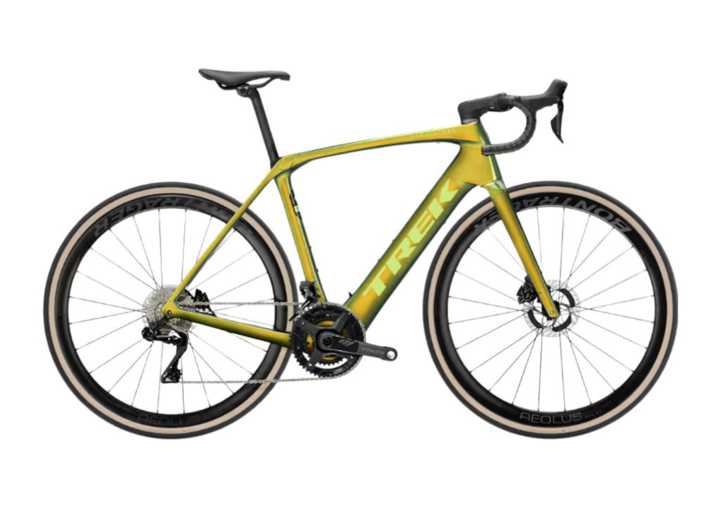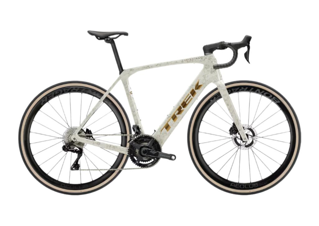 A Domane+ SLR 9 é a nossa melhor bicicleta elétrica de estrada para longas distâncias em carbono. Tudo começa com um quadro ultraleve em carbono OCLV Série 800, equipado com componentes de alta qualidade para o máximo desempenho em cada pedalada. Você terá a potência silenciosa e suave do motor HPR60 da TQ, que torna longos percursos uma experiência agradável. Ela vem equipada com uma transmissão Shimano Dura-Ace Di2 2x12 para trocas de marcha rápidas e precisas, rodas Bontrager Aeolus RSL em carbono OCLV, pedivela em carbono, canote em carbono e guidão Bontrager Aero Pro em carbono, que absorve as vibrações de estradas irregulares.