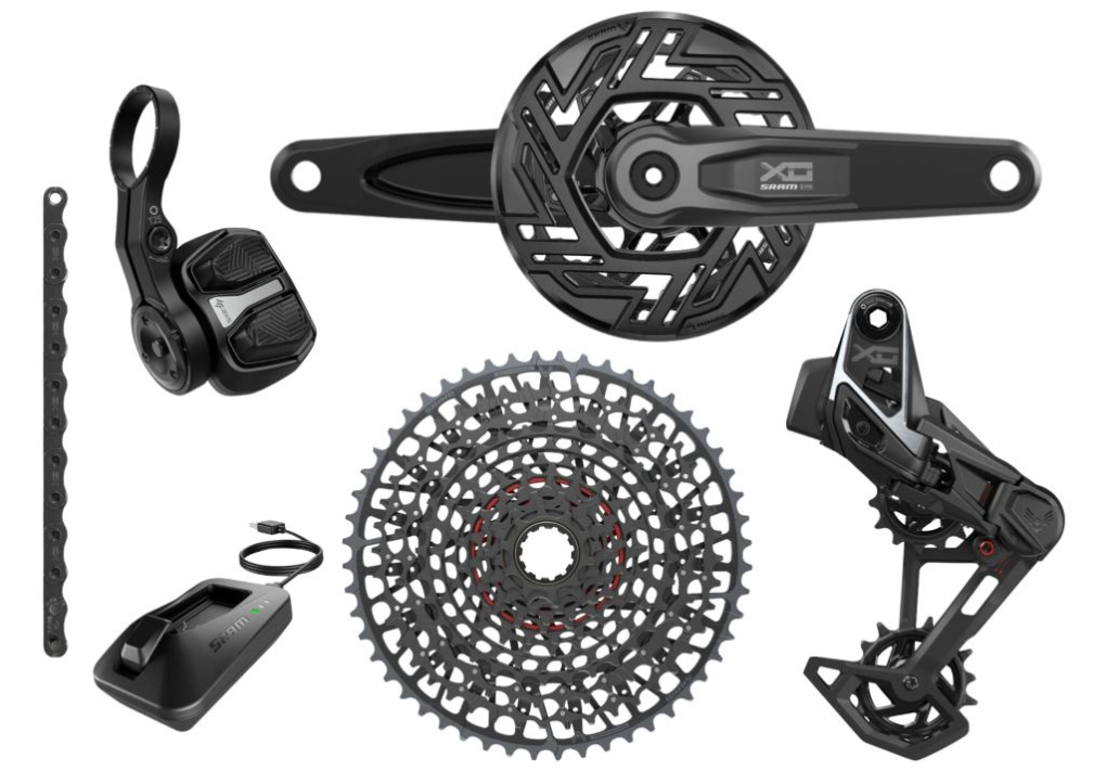Nossa resposta ao pedido para criar uma transmissão robusta e confiável para suas necessidades de enduro, o grupo de transmissão X0 Eagle AXS para bicicletas elétricas é nossa transmissão de alto desempenho mais robusta. Nossas novas transmissões adotam uma abordagem holística para a troca de marchas em bicicletas, com todo o sistema sincronizado, proporcionando uma experiência de pilotagem superior. A troca de marchas sob carga é possível no cassete X0 graças a uma combinação da tecnologia X-SYNC e mapeamento do cassete, criando trocas suaves mesmo durante a sua maior potência. O pedivela X0 Transmission ISIS é compatível com os sistemas Bosch e Brose e apresenta o pedivela de alumínio mais avançado que a SRAM já produziu; é absolutamente único e simplesmente impressionante. Oferecendo aos ciclistas o desempenho legítimo que a X0 representa, graças a um design inovador totalmente em alumínio com uma relação rigidez/peso perfeitamente equilibrada. É também o pedivela de alumínio mais leve do mercado. A corrente de transmissão X0 Flattop possui um acabamento Dark Polar específico da X0, é revestida com níquel químico e conta com um revestimento PVD para uma resistência incrível à corrosão e ao desgaste. Totalmente homologada para uso em E-MTB com pinos sólidos. Com um design de dois botões "clique e dispare", o controlador AXS Pod Ultimate transforma a ação crucial de controlar o ciclista em uma experiência muito mais personalizada para todos os seus controles AXS.