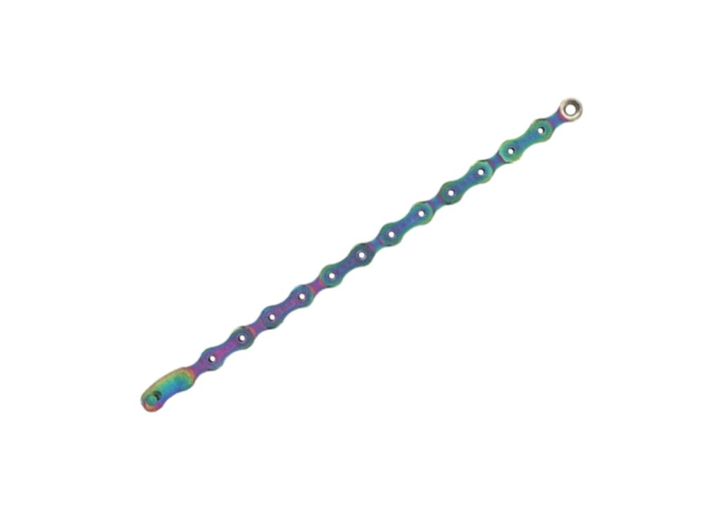 O sistema mais resistente é uma corrente sem elos fracos. Os elos da corrente Eagle possuem um raio suave, sem arestas vivas ou chanfros, o que resulta em uma redução significativa de ruído, atrito e desgaste. Esse design também permite uma placa mais plana, o que significa uma rebitagem da corrente mais consistente e maior resistência geral. Além disso, é o principal fator que contribui para o desempenho ultra suave, preciso, durável e silencioso encontrado no cassete de 10-50 dentes e nas coroas X-SYNC 2. A instalação é facilitada com um elo rápido Eagle de 12 velocidades dedicado.